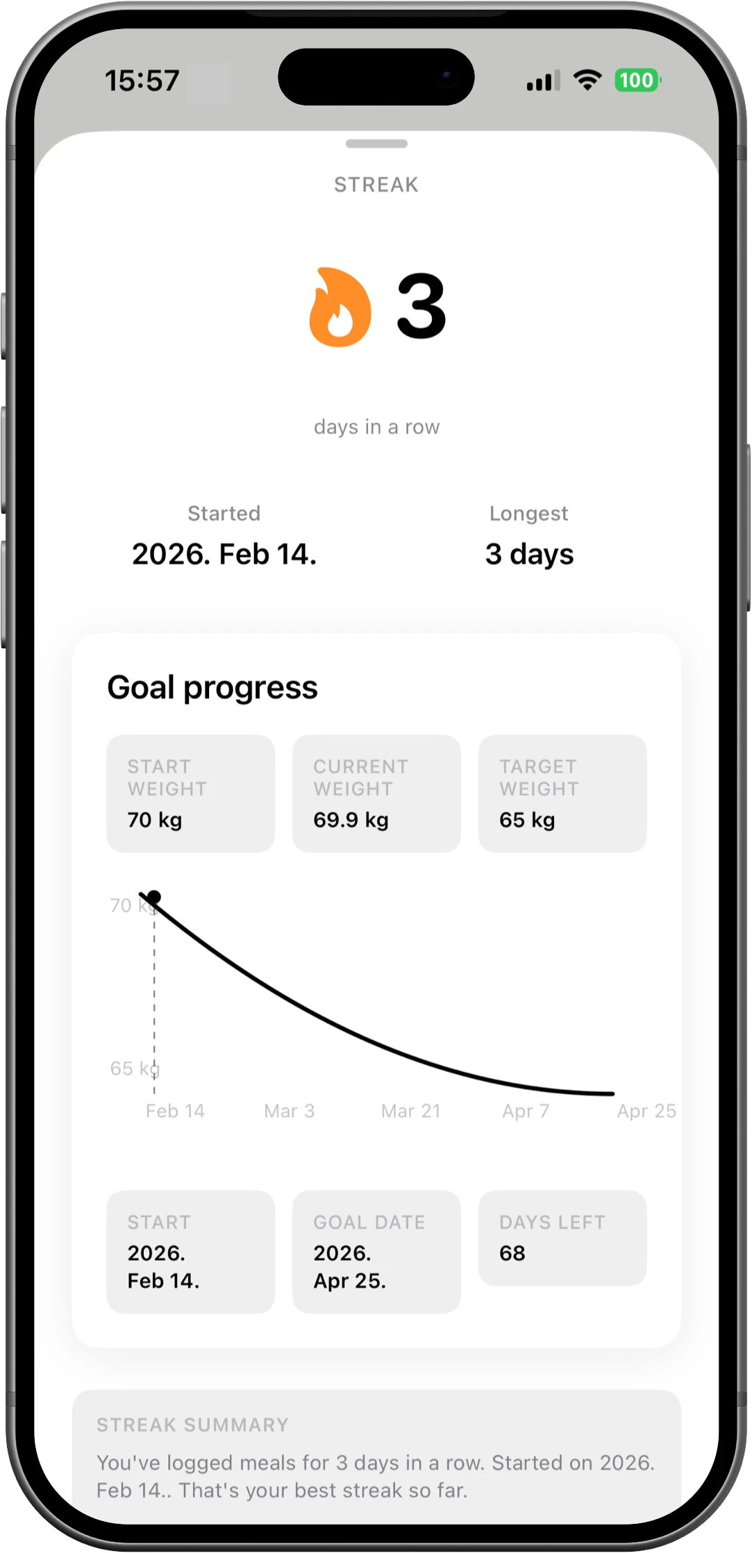 Meals, calories, goals, progress — it’s all right there, no spreadsheets or notes.