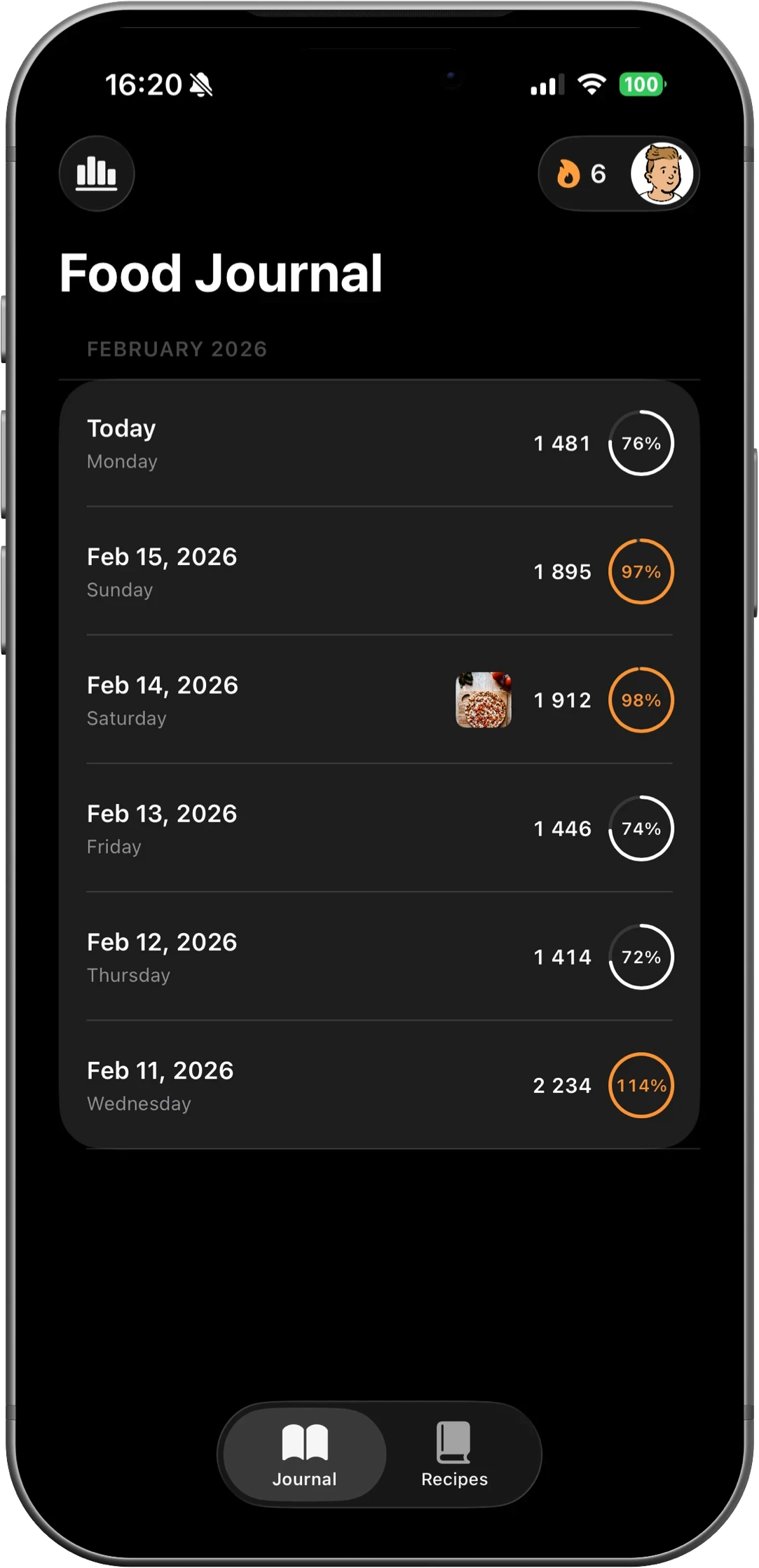 I love how clean and simple the journal is. No clutter, no forms — just a clear list of what I ate and the total at the end.