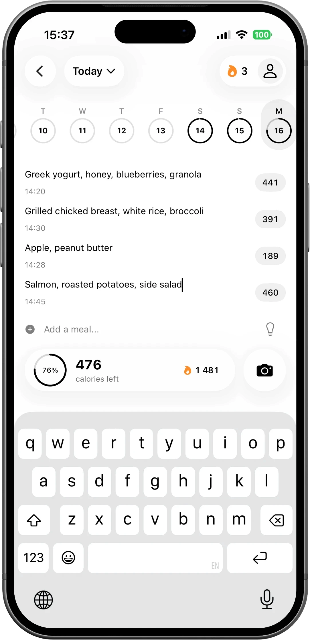 Just write your meals. We handle the calories.